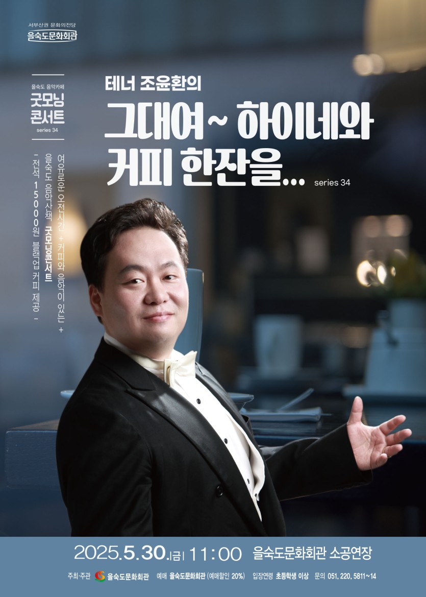 제34회 굿모닝콘서트 '그대여~하이네와 커피 한잔을' | 5. 30.(금) 11:00 | 을숙도문화회관 소공연장 | 테너 조윤환 | 클래식 |
